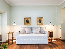 Stari, lijepi stambeni objekt na 4 kata. U centru mjesta Rome, u području Vaticano-Prati, sunčano mjesto, u srcu grada. U kući: dizalo. Trgovina živežnim namirnicama 50 m, supermarket 250 m, restoran 50 m, autobusna postaja "Risorgimento" 200 m, željeznička postaja "Termini" 4.4 km, postaja podzemne željeznice "Ottaviano" 650 m. U blizini: Vaticano 350 m, Castel Sant'Angelo 350 m, Musei Vaticani 750 m, Piazza Del Popolo 1.7 km, Piazza di Spagna 2 km.Interior