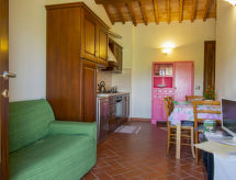 Lijepa ladanjska kuća "Borgo Fontana", iz 18. stoljeća, renovirana, okružena livadama, poljima i vinogradima. 7 apartmana u residenceu. 4 km od centra mjesta Vinci, mirno, sunčano mjesto na brežuljku, u zelenom. Za zajedničko korištenje: parcela 20 ha, veliki vrt travnjak i drveće, travnjak za sunčanje, prirodno jezerce, bazen (6 x 12 m, 150 cm dubok, sezonska dostupnost: 09.Apr. - 29.Oct.). Vanjski tuš, stolni tenis, mjesto za sjedenje, terasa, vrtna garnitura za sjedenje, roštilj. U kompleksu: recepcija, prostorija za druženje s TV, pristup internetu, perilica za rublje (za zajedničko korištenje), Bicikle na raspolaganju. (uz doplatu). Promjena posteljine - 1 puta tjedno. Može na upit (uz doplatu). Parking na parceli. Trgovina 2 km, supermarket 4 km, restoran 2 km, željeznička postaja "Empoli" 9 km, pješčana plaža "Versilia" 60 km. Golf teren 5 km. U blizini: San Miniato 10 km, Empoli 10 km, Montecatini Terme 22 km, Firenze, Lucca 40 m. Pješačke staze: Montalbano 15 km. Dodatna informacija: Ribolov dozvoljen (dozvola neophodna). Prodaja domaćih poljoprivrednih proizvoda. Residence s električnom kapijom.Interior