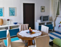 4 -sobna kuća 65 m2 na 2 etaže. Objekt pogodan za 4 odraslih + 2 djece. Dnevni boravak/blagovaona s 1 kaučem za 1 osobu (140 cm, dužina 190 cm), TV-om sa sat. prijemnikom i klima uređajem. Izlaz na terasu. 1 soba s 1 franc. krevetom (160 cm, dužina 200 cm). Otvorena kuhinja (2 ploče za kuhanje, pećnica, 2 plamena za kuhanje, toster, kuhalo za vodu, el. aparat za kavu). Tuš/WC. Donji kat: (vanjske stepenice) dnevni boravak/blagovaona s 1 kaučem za 1 osobu, 1 ležajem, TV-om sa sat. prijemnikom i klima uređajem. 1 soba s 1 bračnim krevetom. Otvorena kuhinja (2 ploče za kuhanje). Tuš/WC. Terasa 35 m2 (djelomično natkrita). Garnitura za sjedenje, vrtni roštilj (prijenosni), ležaljke. Na raspolaganju: Internet (wireless LAN [WLAN], besplatan). Dodatna informacija: kuća za nepušače. Najviše 1 kućni ljubimac / pas dozvoljen. Katovi nisu interno povezani. Prilikom rezervacije po cijeni za 3 osobe, donji kat ostaje zatvoren. Perilica rublja tada nije dostupna. U slučaju boravka manjeg broja gostiju od maksimalnog kapaciteta objekta, jedna etaža objekta neće biti na raspolaganju.- postrojenja