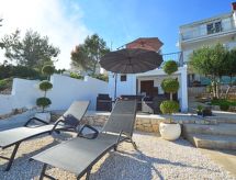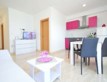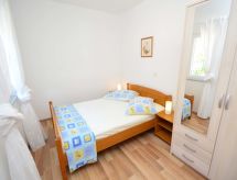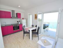 2 -sobni apartman 35 m2 na 1. katu, prema jugu. Dnevni boravak/blagovaona s 1 kaučem za 2 osobe (140 cm, dužina 200 cm), TV-om sa sat. prijemnikom (plosnatim TV ekranom), klima uređajem. Izlaz na terasu. 1 soba s 1 franc. krevetom (160 cm, dužina 200 cm), TV-om sa sat. prijemnikom (plosnatim TV ekranom). Otvorena kuhinja (pećnica, 4 staklokeramičke ploče za kuhanje, zamrzivač, el. aparat za kavu). Tuš/WC. Terasa 20 m2 (djelomično natkrita). Garnitura za sjedenje. Prekrasan pogled na more. Na raspolaganju: Internet (wireless LAN [WLAN], besplatan).- postrojenja