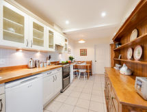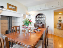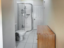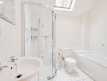 3 -sobna obiteljska kuća na 2 etaže. Prostrano i svijetlo, komforno i ukusno uređena: otvoreni dnevni boravak s TV-om, plosnatim TV ekranom i DVD-om. Otvorena kuhinja (4 ploče za kuhanje, pećnica, mikrovalna pećnica, zamrzivač) s stolom za blagovanje. Odv. WC. Grijanje. Gornji kat: 1 bračna soba s 1 bračnim krevetom i tušem/WC-om. 2 sobe, svaka soba s 2 kreveta. Kada/tuš/WC. Grijanje. Lijep pogled na vrt i more. Na raspolaganju: perilica za rublje, sušilica. Internet (wireless LAN [WLAN], besplatan). Dodatna informacija: kuća za nepušače. 1 kućni ljubimac / pas dozvoljen.- postrojenja