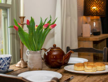 2 -sobna obiteljska kuća na 2 etaže. Komforno i udobno uređena: dnevni boravak/blagovaona s TV-om (plosnatim TV ekranom), CD-om, DVD-om i peći na drva. Otvorena kuhinja (4 ploče za kuhanje, pećnica, perilica za suđe, mikrovalna pećnica). Odv. WC. Gornji kat: 1 soba s 1 bračnim krevetom i tušem. El. grijanje, podno grijanje. Na raspolaganju: perilica za rublje, visoka dječja stolica, dječji krevetić do 2 godine. Internet (wireless LAN [WLAN], besplatan). IPod docking station. Dodatna informacija: kuća za nepušače. Najviše 1 kućni ljubimac / pas dozvoljen.- postrojenja