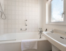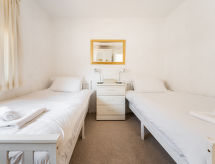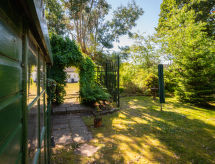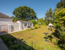 3 -sobni bungalov. Prostrano i svijetlo, ukusno i stilski uređen: dnevni boravak s TV-om (plosnatim TV ekranom). 1 bračna soba s 1 bračnim krevetom. 1 soba s 2 kreveta. Kuhinja (4 ploče za kuhanje, pećnica, mikrovalna pećnica, zamrzivač, gril). Kada/tuš/WC. Grijanje. Mala. Garnitura za sjedenje. Lijep pogled na vrt. Na raspolaganju: perilica za rublje, dječji krevetić do 2 godine, sušilo za kosu. Internet (wireless LAN [WLAN], besplatan). Parking uz kuću. Dodatna informacija: kuća za nepušače. 1 mali kućni ljubimac / pas dozvoljen. TV samo EN.- Značajke smještaja