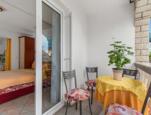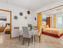 "Brzic (CKV105)", 2 -sobni apartman 43 m2, u prizemlju. Dnevno-spavaća soba s 1 franc. krevetom (160 cm, dužina 200 cm), stolom za blagovanje, TV-om sa sat. prijemnikom i klima uređajem. Izlaz na balkon. 1 soba s 2 kreveta (90 cm, dužina 200 cm). Otvorena kuhinja (2 ploče za kuhanje, perilica za suđe, toster, kuhalo za vodu, el. aparat za kavu). Tuš/WC. Klima uređaj, grijanje toplim zrakom (uz doplatu). Balkon. Balkonski namještaj. Na raspolaganju: Internet (wireless LAN [WLAN], besplatan). Dodatna informacija: kuća za nepušače.- postrojenja