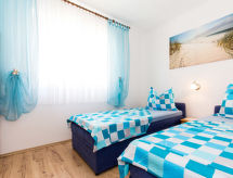 "Brzic (CKV106)", 4 -sobni apartman 85 m2 na 2. katu. Dnevni boravak s TV-om sa sat. prijemnikom i klima uređajem. 1 soba s 1 franc. krevetom (160 cm, dužina 200 cm). 1 soba s 1 franc. krevetom (160 cm, dužina 200 cm). Izlaz na balkon. 1 soba s 2 kreveta (90 cm, dužina 200 cm). Izlaz na balkon. Otvorena kuhinja (pećnica, perilica za suđe, 4 staklokeramičke ploče za kuhanje, toster, kuhalo za vodu, zamrzivač, el. aparat za kavu) s stolom za blagovanje. Tuš/WC. Klima uređaj, grijanje toplim zrakom (uz doplatu). Balkon 22 m2. Balkonski namještaj. Pogled na more. Na raspolaganju: Internet (wireless LAN [WLAN], besplatan). Dodatna informacija: kuća za nepušače. Vlastiti ulaz.- postrojenja