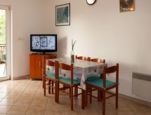 "Buda (HVR217)", 3 -sobni apartman 60 m2, u povišenom prizemlju. Dnevni boravak/blagovaona s 1 kaučem za 1 osobu i TV-om sa sat. prijemnikom. Izlaz na balkon. 1 soba s 1 bračnim krevetom. 1 soba s 2 kreveta. Otvorena kuhinja (4 ploče za kuhanje, pećnica, el. aparat za kavu). Tuš/WC. Balkonski namještaj, lođa. Na raspolaganju: Internet (wireless LAN [WLAN], besplatan). Parking (2 automobila). Najviše 1 kućni ljubimac / pas dozvoljen. Maks. popunjenost: 4 odraslih, 1 dijete do 12 godina.- postrojenja