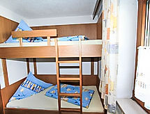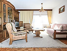 4 -sobni apartman 100 m2, na gornjem katu. Udobno uređen: predsoblje. Dnevno-spavaća soba s 1 kaučem za 2 osobe i TV-om sa sat. prijemnikom. Izlaz na balkon. 1 bračna soba. Izlaz na balkon. 1 soba s 2 kreveta i 1 bračnim krevetom. 1 mala soba s 1 x 2 kreveta na kat (90 cm, dužina 200 cm). Kuhinja (pećnica, perilica za suđe, 4 staklokeramičke ploče za kuhanje, mikrovalna pećnica) s kutom za blagovanje. Izlaz na balkon. Kada/tuš, odv. WC. Balkon. Garnitura za sjedenje, ležaljke. Lijep pogled na planine i krajolik. Na raspolaganju: Internet (wireless LAN [WLAN], besplatan). Dodatna informacija: apartman za nepušače. 1 mali kućni ljubimac / pas dozvoljen.- Značajke smještaja