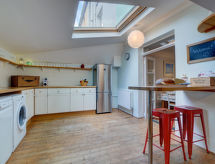 4 -sobna obiteljska kuća na 3 etaže. Prostrano i svijetlo, komforno i ukusno uređena: otvoreni dnevni boravak s TV-om, plosnatim TV ekranom i DVD-om. Otvorena kuhinja (4 ploče za kuhanje, pećnica, mikrovalna pećnica, zamrzivač) s stolom za blagovanje. Grijanje. Gornji kat: 1 bračna soba s 1 bračnim krevetom. 1 soba s 2 kreveta. Kada/tuš/WC. Grijanje. 2. Gornji kat: 1 soba s 1 bračnim krevetom. 1 soba s 2 kreveta i tušem/WC-om. Grijanje. Garnitura za sjedenje. Pogled na na grad. Na raspolaganju: perilica za rublje, sušilica. Internet (wireless LAN [WLAN], besplatan). Dodatna informacija: kuća za nepušače. 1 kućni ljubimac / pas dozvoljen.- postrojenja