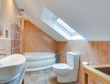 4 -sobna obiteljska kuća na 2 etaže. Prostrano i svijetlo, komforno i ukusno uređena: otvoreni dnevni boravak s TV-om, plosnatim TV ekranom, DVD-om i peći na drva. Otvorena kuhinja (4 ploče za kuhanje, pećnica, perilica za suđe, mikrovalna pećnica, zamrzivač) s stolom za blagovanje. Grijanje. Gornji kat: 1 bračna soba s kosim stropom s 1 bračnim krevetom i tušem/WC-om. 1 bračna soba s kosim stropom s 1 bračnim krevetom. 1 soba s kosim stropom s 2 kreveta. Kada/tuš/WC. Grijanje. Lijep pogled na planine. Na raspolaganju: perilica za rublje. Internet (wireless LAN [WLAN], besplatan). Dodatna informacija: kuća za nepušače.- postrojenja
