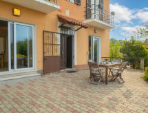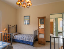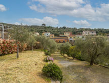 "Ca' del Sole", 5 -sobna kuća 200 m2 na 2 etaže. Svijetlo, stilski i udobno uređena: dnevno-spavaća soba s 1 krevetom (80 cm), TV-om sa sat. prijemnikom. Kuhinja (pećnica, perilica za suđe, 4 plamena za kuhanje, zamrzivač, el. aparat za kavu) s stolom za blagovanje. Izlaz u vrt. Tuš/bidet/WC. Gornji kat: 1 soba s 1 franc. krevetom (160 cm). Izlaz na balkon. 1 soba s 1 franc. krevetom (160 cm). 1 soba s 3 kreveta (80 cm). 1 soba s 1 kaučem za 2 osobe (145 cm). Izlaz na balkon. Tuš/WC. Grijanje na plin. Grijanje na raspolaganju samo od 15.10. do 30.04. 2 mala balkona, velika terasa. Garnitura za sjedenje, vrtni roštilj, ležaljke (4). Lijep panoramski pogled na krajolik, mjesto i more. Na raspolaganju: perilica za rublje, glačalo, visoka dječja stolica, dječji krevetić. Internet (wireless LAN [WLAN], besplatan). Najviše 3 kućna ljubimca / psa dozvoljena. CITRA: 008022-LT-0016- postrojenja