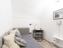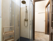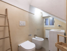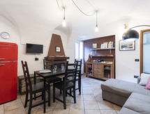 "Ca' la Piazzetta", 3 -sobni apartman 70 m2. Renoviran godine 2021, rustikalno i ukusno uređen: 1 soba s 1 kaučem za 2 osobe (2 x 80 cm, dužina 200 cm). Tuš/bidet/WC. Grijanje na plin, klima uređaj, grijanje toplim zrakom. Grijanje na raspolaganju samo od 01.11. do 31.03. Gornji kat: dnevni boravak/blagovaona s 1 kaučem za 2 osobe (160 cm, dužina 200 cm), otvorenim kaminom i TV-om. 1 bračna soba. Mala, otvorena kuhinja (pećnica, 4 plamena za kuhanje, toster, kuhalo za vodu, mikrovalna pećnica). Na raspolaganju: perilica za rublje. Internet (wireless LAN [WLAN], besplatan). 1 kućni ljubimac / pas dozvoljen. CITRA:008029-LT-0098- postrojenja