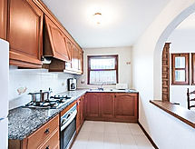 4 -sobna kuća 90 m2 na 2 etaže. Jednostavno uređena: dnevni boravak/blagovaona s digitalnim TV i ventilatorom. 1 soba s 2 kreveta (90 cm, dužina 190 cm). 1 soba s 1 franc. krevetom (150 cm, dužina 190 cm). Kuhinja (4 ploče za kuhanje, pećnica, toster, kuhalo za vodu, mikrovalna pećnica, el. aparat za kavu). Kada/bidet/WC. Bez grijanja. Gornji kat: 1 soba s 1 franc. krevetom (150 cm, dužina 190 cm). Garnitura za sjedenje. Na raspolaganju: perilica za rublje, glačalo, visoka dječja stolica, dječji krevetić, sušilo za kosu. Garaža. Dodatna informacija: kuća za nepušače. Najviše 1 kućni ljubimac / pas dozvoljen. HUTG-013741- postrojenja