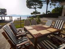 "Cabot", 7 -sobna kuća 195 m2, u niskom prizemlju. Objekt pogodan za 11. Prostrano i svijetlo, jednostavno i udobno uređena: otvoreni dnevni boravak/blagovaona s panoramskim prozorom s otvorenim kaminom, stolom za blagovanje, TV-om, međunarodnim TV kanalima, klima uređajem i grijanjem na topli zrak. Izlaz na mjesto za sjedenje u vrtu. 4 bračne sobe, svaka soba s 2 kreveta (90 cm, dužina 190 cm), klima uređajem i grijanjem na topli zrak. 1 bračna soba s panoramskim prozorom s 1 franc. krevetom (140 cm), klima uređajem i grijanjem na topli zrak. 1 soba s 1 krevetom (90 cm), klima uređajem i grijanjem na topli zrak. Kuhinja (4 ploče za kuhanje, pećnica, perilica za suđe, toster, kuhalo za vodu, mikrovalna pećnica, zamrzivač, el. aparat za kavu). Izlaz na terasu. 3 x kada/tuš/WC. Velika vrtna terasa. Garnitura za sjedenje, vrtni roštilj, ležaljke (2). Vrlo lijep panoramski pogled na more, planine, vrt i zaljev. Na raspolaganju: perilica za rublje, glačalo, visoka dječja stolica, dječji krevetić do 2 godine, sušilo za kosu. Internet (wireless LAN [WLAN], besplatan). Prikladno za obitelji. 68912016- Aktivnosti u blizini