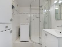 3 -sobni apartman 52 m2 na 2 etaže na 1. katu. Dnevni boravak/blagovaona s TV-om (plosnatim TV ekranom). 1 soba s 1 franc. krevetom (140 cm, dužina 190 cm). Kuhinjska niša (perilica za suđe, 4 Indukcione ploče, mikrovalna pećnica). Tuš, odv. WC. Gornji kat: 1 soba s 2 kreveta (90 cm, dužina 190 cm). Terasa 7 m2, prema jugu. Garnitura za sjedenje. Na raspolaganju: perilica za rublje. Internet (wireless LAN [WLAN], uz doplatu). Parking br. 292. Dodatna informacija: protupožarni alarm.- Značajke smještaja