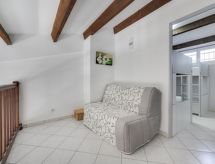 Residence "Camargue Village". U četvrti le Boucanet, izvan mjesta, 1.5 km od centra mjesta le Grau du Roi, 350 m od mora. Za zajedničko korištenje: boćalište. Trgovina, trgovina živežnim namirnicama 100 m, supermarket 1.2 km, trgovački centar 800 m, restoran 100 m, željeznička postaja "Grau du Roi" 4 km, pješčana plaža 300 m, termalno kupalište "Thalazur" 8 km. U blizini: Les Arènes du Grau du Roi 4 km, Casino Flamingo 6 km, Seaquarium 6 km, Aigues-Mortes 7 km, La Grande Motte 10 km, Nîmes 54 km. Pješačke staze: La réserve naturelle de camrgue. Dodatna informacija: ključeve ćete preuzeti u turističkoj agenciji interhome u mjestu port camargue, 6 km. Zračna luka 20 km od kuće.Interior