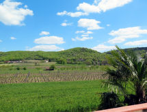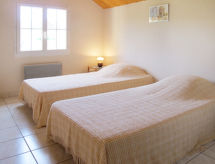 "Cambou (AAS400)", 3 -sobna kuća 90 m2 na 2 etaže. Svrsishodno i udobno uređena: dnevni boravak/blagovaona s otvorenim kaminom, stolom za blagovanje i TV-om sa sat. prijemnikom (plosnatim TV ekranom). Izlaz na terasu. Otvorena kuhinja (pećnica, perilica za suđe, 4 plamena za kuhanje, toster, kuhalo za vodu, mikrovalna pećnica, zamrzivač, el. aparat za kavu) s malim stolom za blagovanje. Tuš, odv. WC. Gornji kat: 1 soba s 2 kreveta (90 cm, dužina 190 cm). 1 soba s 1 franc. krevetom (140 cm, dužina 190 cm). Izlaz na terasu. Odv. WC. El. grijanje. Terasa 17 m2, prema jugu. Garnitura za sjedenje, vrtni roštilj, ležaljke. Lijep pogled na krajolik. Na raspolaganju: perilica za rublje, glačalo, visoka dječja stolica, dječji krevetić. Internet (wireless LAN [WLAN], besplatan). Dodatna informacija: apartman za nepušače. Najviše 1 kućni ljubimac / pas dozvoljen. Protupožarni alarm.- postrojenja