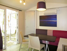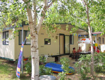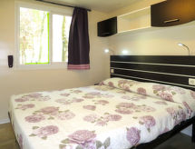 3 -sobna mobilna kućica 24 m2. Svrsishodno uređena: dnevno-spavaća soba s 1 kaučem za 2 osobe, stolom za blagovanje i kuhinjskim blokom. 1 soba s 1 bračnim krevetom. 1 soba s 2 kreveta. Kuhinjska niša (4 plamena za kuhanje, zamrzivač). Tuš/WC. El. grijanje, klima uređaj. Terasa. Garnitura za sjedenje, ležaljke (1). Najviše 1 kućni ljubimac / pas dozvoljen.- postrojenja