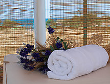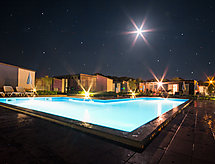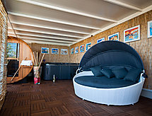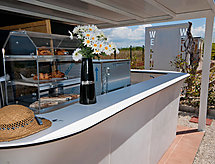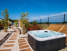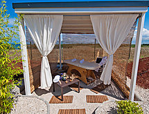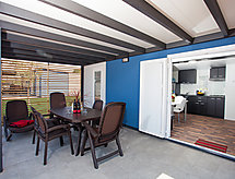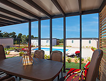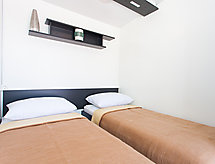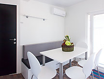 4 -sobna mobilna kućica 34 m2. Lijepo uređena: dnevni boravak/blagovaona s 1 kaučem za 2 osobe (140 cm, dužina 190 cm), TV-om sa sat. prijemnikom i klima uređajem. Izlaz na terasu. 1 soba s 1 franc. krevetom (160 cm, dužina 200 cm). 1 soba s 2 kreveta (80 cm, dužina 200 cm). 1 soba s 1 x 2 kreveta na kat (80 cm, dužina 200 cm). Otvorena kuhinja (4 plamena za kuhanje, zamrzivač). 2 x tuš/WC. Terasa 18 m2 (natkrita). Garnitura za sjedenje. Na raspolaganju: visoka dječja stolica (uz doplatu). Internet (wireless LAN [WLAN], besplatan). Dodatna informacija: apartman za nepušače.- postrojenja