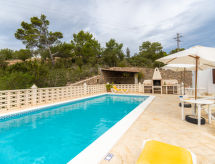 Ugodno seosko imanje "Can Pep Jaume", godina izgradnje 2004. Izvan mjesta, 3 km od centra mjesta St. Carles, mirno, sunčano, povišeno mjesto, 600 m od mora, uz cestu. Za samostalno korištenje: parcela 6'000 m2 (ograđena), bazen pravokutni (8 x 3 m, 190 cm dubok, sezonska dostupnost: 01.May. - 30.Oct.). Tuš/WC uz bazen, pergola (24 m2), terasa (90 m2), vrtna garnitura za sjedenje, roštilj. U kući: pristup internetu, wireless LAN [WLAN], klimatizacija, perilica za rublje. Strmi prilaz autom. Parking (za 4 automobila) uz kuću na parceli. Trgovina živežnim namirnicama 600 m, restoran 400 m, autobusna postaja 300 m, pješčana plaža 900 m, stjenovita plaža 500 m. Golf teren 15 km, tenis 500 m. U blizini: Cala Mastella 900 m, Cala Llenya 1 km, Cala Nova 2 km. Dodatna informacija: preporučljiv vlastiti prijevoz.Interior