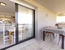 3 -sobni apartman 50 m2 na 5. katu. Svrsishodno i komforno uređen: dnevni boravak/blagovaona s 1 kaučem za 2 osobe, digitalnim TV, klima uređajem i grijanjem na topli zrak. Izlaz na lođu. 1 soba s 1 franc. krevetom (135 cm, dužina 190 cm). 1 soba s 1 x 2 kreveta na kat (80 cm, dužina 180 cm). Otvorena kuhinja (4 ploče za kuhanje, pećnica, mikrovalna pećnica, zamrzivač) s otvorom prema blagovaoni. Kada/bidet/WC. Veliki balkon 25 m2. Balkonski namještaj. Panoramski pogled na planine i mjesto. Na raspolaganju: perilica za rublje, glačalo. HUTT005501- postrojenja