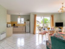 Mimizan Bourg 5 km od mjesta Mimizan Plage: Kuća u nizu "Cantegrit", godina izgradnje 2003. 10 kuća u residenceu. U samom mjestu 1 km od centra mjesta Mimizan bourg, 100 m od ruba šume, 5 km od mora, 2 km od jezera, 5 km od plaže. Za samostalno korištenje: parcela 400 m2 (ograđena). Vrtna garnitura za sjedenje, roštilj. Parking. Trgovina 2 km, trgovina živežnim namirnicama 2 km, trgovački centar 2 km, restoran 1 km, pekara 2 km, pješačka zona 2 km, najam bicikli 2 km, pješčana plaža "La Garluche" 5 km, jezero za kupanje "Mimizan" 2 km. Golf teren (9 rupa) 5 km, škola jedrenja na dasci 5 km, tenis 5 km, biciklistička staza 200 m. U blizini: skate Parc 5 km, Arcachon dune du pilat 70 km, Biscarrosse 30 km, Disc golf 7 km. Pješačke staze: Eco musée de Marquèze 40 km.Interior