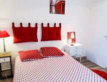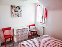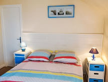 4 -sobna kuća 100 m2 na 3 etaže. Dnevni boravak/blagovaona s TV-om. Izlaz na terasu. Kuhinja (4 ploče za kuhanje, pećnica, perilica za suđe, mikrovalna pećnica, zamrzivač). Odv. WC. Gornji kat: 2 sobe, svaka soba s 1 franc. krevetom (1 x 140 cm, dužina 190 cm). Tuš. 2. Gornji kat: 1 soba s kosim stropom s 1 franc. krevetom (1 x 140 cm, dužina 190 cm). Grijanje na plin. Mala terasa 10 m2, mali vrt. Garnitura za sjedenje, vrtni roštilj, ležaljke (4). Na raspolaganju: perilica za rublje. Internet (wireless LAN [WLAN], uz doplatu). Parking br. 1. Dodatna informacija: protupožarni alarm.- postrojenja