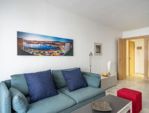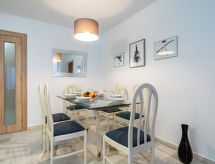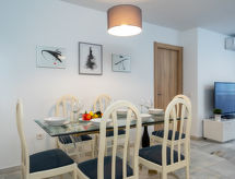 4 -sobni apartman 88 m2 na 1. katu. Objekt pogodan za 6. Svijetlo, renoviran godine 2018: dnevni boravak/blagovaona s digitalnim TV, plosnatim TV ekranom, klima uređajem i grijanjem na topli zrak. Izlaz na terasu. 1 bračna soba s 1 franc. krevetom, klima uređajem i grijanjem na topli zrak. 1 bračna soba s 2 kreveta (90 cm), klima uređajem i grijanjem na topli zrak. 1 bračna soba s 2 kreveta (90 cm). Kuhinja (pećnica, perilica za suđe, 4 staklokeramičke ploče za kuhanje, mikrovalna pećnica, zamrzivač, el. aparat za kavu). Kada/WC. Terasa 10 m2. Garnitura za sjedenje, ležaljke (2). Na raspolaganju: perilica za rublje. Internet (wireless LAN [WLAN]). Parking br. 69 (uz doplatu). Prikladno za obitelji. VFT/MA/27808- postrojenja