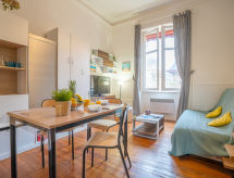 Vrlo lijepi residence "Carlton". U centru mjesta Biarritz, sunčano mjesto, 150 m od mora, 150 m od plaže. U kući: dizalo. Javna garaža na 300 m. Trgovina 100 m, trgovina živežnim namirnicama 50 m, supermarket 3.7 km, restoran 50 m, autobusna postaja "Le Palais" 100 m, pješčana plaža "La Grande Plage", natkriveni bazen 150 m. Golf teren (18 rupa) 1.7 km, škola jedrenja na dasci 150 m. U blizini: Aquarium 1 km, Le Phare 1.3 km, Marché des Halles 850 m, Cité de l'océan 3.4 km. Pješačke staze: La Rhune 28 km. Dodatna informacija: ključeve ćete preuzeti u turističkoj agenciji Interhome. Zračna luka 4.5 km od kuće.Interior