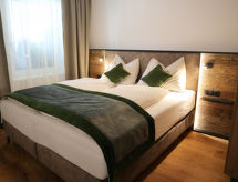 "Penthouse Großglockner", 5 -sobni apartman 100 do 115 m2. Svijetlo, komforno i ukusno uređen: dnevno-spavaća soba s 1 kaučem za 2 osobe, stolom za blagovanje, TV-om sa sat. prijemnikom i plosnatim TV ekranom. 4 bračne sobe. Otvorena kuhinja (pećnica, perilica za suđe, 4 staklokeramičke ploče za kuhanje, toster, kuhalo za vodu, mikrovalna pećnica, zamrzivač, el. aparat za kavu). 3 x tuš/WC. Balkon. Balkonski namještaj. Lijep pogled na planine. Na raspolaganju: sauna. Internet (wireless LAN [WLAN], besplatan). Garaža. Dodatna informacija: apartman za nepušače. Rezervira se tipski objekt (kuća, apartman) i moguća su manja odstupanja. Sauna je izvan objekta! 50617-000049-2020- postrojenja