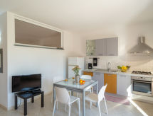 "Terrazzo II", 1 -sobni apartman 50 m2, u prizemlju. Moderno uređen: dnevno-spavaća soba s 1 krevetom (80 cm), 1 franc. krevetom (180 cm), stolom za blagovanje i TV-om sa sat. prijemnikom. Izlaz na terasu. Otvorena kuhinja (pećnica, perilica za suđe, 4 plamena za kuhanje, toster, zamrzivač, el. aparat za kavu). Tuš/WC. Grijanje na plin. Terasa. Garnitura za sjedenje, vrtni roštilj (prijenosni), ležaljke. Na raspolaganju: perilica za rublje. Internet (wireless LAN [WLAN], uz doplatu). Dodatna informacija: apartman za nepušače. Vlastiti ulaz. CITRA: 008031-LT-0585- postrojenja