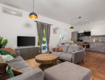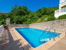 Dvojna kuća "Casa Albertina", na 2 kata. U zaseoku Martina 2 km od centra mjesta Brseč, 8 km od centra mjesta Moščenićka Draga, 3.5 km od mora, 3.5 km od plaže. Za zajedničko korištenje: parcela 900 m2 - travnjak i bilje, bazen pravokutni (8 x 4 m, 150 cm dubok, sezonska dostupnost: 01.May. - 31.Oct.). Vanjski tuš, terasa. Bazen održava vlasnik/vrtlar. U kući: pristup internetu. 400 m dugački strmi prilaz autom do kuće. Parking na parceli. Trgovina 2 km, restoran 2 km, šljunčana plaža 3.5 km. Grupe mladih nisu dozvoljene.Interior
