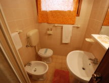 3 -sobni apartman 40 m2. Svijetlo, jednostavno i svrsishodno uređen: dnevni boravak/blagovaona s stolom za blagovanje i TV-om. 1 soba s 2 kreveta. 1 soba s 1 bračnim krevetom. Kuhinjska niša (4 ploče za kuhanje, pećnica, zamrzivač). Tuš/bidet/WC. Klima uređaj. 1 kućni ljubimac / pas dozvoljen.- postrojenja