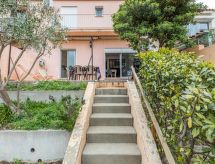 5 -sobna kuća u nizu 95 m2. Dnevni boravak/blagovaona s TV-om (plosnatim TV ekranom). Izlaz na terasu. 1 soba s 1 franc. krevetom (1 x 160 cm, dužina 200 cm). Velika, otvorena kuhinja (pećnica, perilica za suđe, 4 plamena za kuhanje, toster, kuhalo za vodu, mikrovalna pećnica, el. aparat za kavu). Tuš, odv. WC. El. grijanje, klima uređaj. Gornji kat: predsoblje. 2 sobe, svaka soba s 1 franc. krevetom (1 x 160 cm, dužina 200 cm). 1 soba s 2 kreveta (90 cm, dužina 190 cm). Kada, odv. WC. Klima uređaj. Terasa 26 m2, vrtna terasa 60 m2. Garnitura za sjedenje. Na raspolaganju: perilica za rublje. Internet (wireless LAN [WLAN]). Garaža. Dodatna informacija: protupožarni alarm.- Aktivnosti u blizini