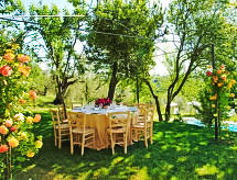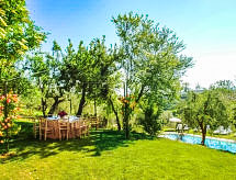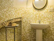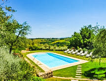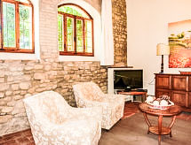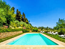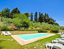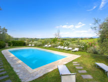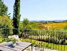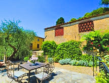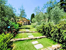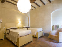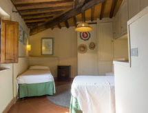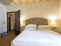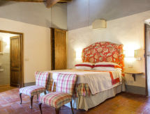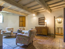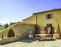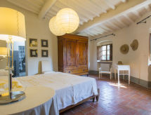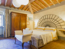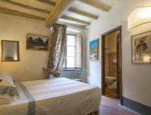 Povijesna ladanjska kuća "Casa delle Fiabe", na 2 kata, iz 17. stoljeća, renovirana, okružena vinogradima. 4 km od centra mjesta San Casciano, u području Firenze, sunčano, povišeno mjesto, odlična pozicija: u samom centru, a ipak mirno, u zelenom. Za zajedničko korištenje: parcela 30 ha. Za samostalno korištenje: vrt 2'000 m2 (nije ograđen) - travnjak i cvijeće, bazen (70 m2, 140 cm dubok, sezonska dostupnost: 03.Apr. - 16.Oct.) s unutarnjim stepenicama. Vanjski tuš, terasa, vrtna garnitura za sjedenje, roštilj. U kući: pristup internetu, perilica za rublje. Promjena posteljine (dodatno uz doplatu). Promjena ručnika (dodatno uz doplatu). Čišćenje apartmana (uz doplatu). Kuhar moguć (uz doplatu). 1.3 km dugački prilaz autom do kuće. Parking uz kuću na parceli. Trgovina 4 km, supermarket 3 km, restoran 3 km, pekara 4 km. Golf teren 25 km, tenis 5 km. U blizini: Firenze 22 km, Siena 55 km.Interior