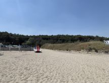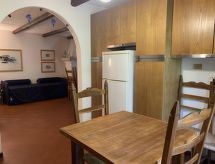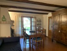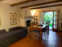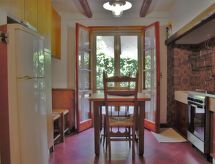 2 -sobni apartman 60 m2, u prizemlju. Objekt pogodan za 3 odraslih + 1 dijete. Komforno i rustikalno uređen: velika dnevno-spavaća soba s 1 kaučem za 1 osobu, 1 krevetom na izvlačenje, otvorenim kaminom, stolom za blagovanje i TV-om (plosnatim TV ekranom). Izlaz u vrt, na lođu. 1 bračna soba. Otvorena kuhinja (pećnica, 4 plamena za kuhanje, mikrovalna pećnica) s stolom za blagovanje. Izlaz u vrt. Kada/bidet/WC. Bez grijanja. Garnitura za sjedenje, ležaljke (1), lođa. Na raspolaganju: perilica za rublje, mrežice protiv komaraca, sušilo za kosu, drvo (uklj.). Internet (wireless LAN [WLAN], besplatan). Dodatna informacija: prikladno za obitelji. Kuća za nepušače. Vlastiti ulaz. Na licu mjesta nema naplate dodatnih troškova, osim boravišne pristojbe. Posteljina, ručnici, završno čišćenje i troškovi energije su uključeni u cijenu.- postrojenja