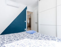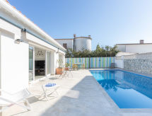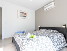 4 -sobna kuća 127 m2. Prostrano i svijetlo, potpuno renovirana, vrlo moderno i stilski uređena: dnevni boravak/blagovaona s stolom za blagovanje, TV-om sa sat. prijemnikom, digitalnim TV i međunarodnim TV kanalima (plosnatim TV ekranom), klima uređajem i grijanjem na topli zrak. Izlaz na terasu, na bazen. 1 soba s 1 franc. krevetom (160 cm, dužina 200 cm), klima uređajem i grijanjem na topli zrak. Izlaz na bazen. 1 soba s 1 franc. krevetom (140 cm, dužina 190 cm), klima uređajem i grijanjem na topli zrak. 1 soba s 2 kreveta (90 cm, dužina 190 cm), klima uređajem i grijanjem na topli zrak. Kuhinja (pećnica, perilica za suđe, 3 Indukcione ploče, toster, kuhalo za vodu, mikrovalna pećnica, zamrzivač, el. aparat za kavu, Doze za mašinu za kavu (NESPRESSO) uz doplatu). Kada/WC, tuš/WC. Velika vrtna terasa. Garnitura za sjedenje, ležaljke. Na raspolaganju: perilica za rublje, sušilica, glačalo, visoka dječja stolica, dječji krevetić, sušilo za kosu. Internet (wireless LAN [WLAN], besplatan). Parking (ograđen). Dodatna informacija: prikladno za obitelji. Kuća za nepušače. 1 mali kućni ljubimac / pas dozvoljen. TV samo FR, DE, ES. HUTG060557- Značajke smještaja
