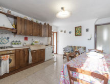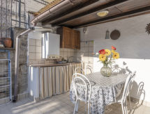 "Casa Gaia (TAG120)", 3 -sobna kuća u nizu 75 m2 na 2 etaže. Rustikalno i antikno uređena: mali dnevni boravak s TV-om. 1 soba s 1 franc. krevetom (160 cm). 1 soba s 2 kreveta (80 cm). Tuš/WC. Gornji kat: (stepenice bez rukohvata). Kuhinja (pećnica, perilica za suđe, 4 plamena za kuhanje, toster, zamrzivač) s stolom za blagovanje. Izlaz na terasu. Grijanje na plin. Grijanje na raspolaganju samo od 01.10. do 30.04. Terasa 17 m2 (djelomično natkrita). Garnitura za sjedenje, električni roštilj, ležaljke (2). Na raspolaganju: perilica za rublje, glačalo, visoka dječja stolica, dječji krevetić. 1 kućni ljubimac / pas dozvoljen. CITRA: 008059-LT-0027- postrojenja