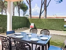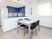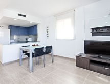 4 -sobna kuća u nizu 74 m2. Dnevni boravak/blagovaona s digitalnim TV i plosnatim TV ekranom. Izlaz na terasu, na bazen. 1 soba s 1 x 2 kreveta na kat. Otvorena kuhinja (4 ploče za kuhanje, pećnica, mikrovalna pećnica, zamrzivač). Tuš/WC. Klima uređaj. Gornji kat: 1 soba s 1 krevetom na izvlačenje (2 osobe). 1 soba s 1 franc. krevetom. Izlaz na terasu. Kada/bidet/WC. Garnitura za sjedenje. Pogled na bazen i vrt. Na raspolaganju: perilica za rublje. Internet (wireless LAN [WLAN]). Dodatna informacija: TV samo ES. HUTG004625- Aktivnosti u blizini