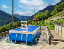 "Casa Pina", 4 -sobna obiteljska kuća na 2 etaže. Djelomično spušten strop, svrsishodno i rustikalno uređena: otvoreni dnevni boravak s TV-om i peći na drva. Kuhinja (pećnica, 4 staklokeramičke ploče za kuhanje, toster, kuhalo za vodu, el. aparat za kavu, raclette roštilj, set za fondue (sir)) s stolom za blagovanje. Tuš/WC, hidromasažnim tušem. El. grijanje. Gornji kat: 2 bračne sobe s kosim stropom, svaka soba s 1 bračnim krevetom (2 x 90 cm, dužina 200 cm). 1 soba s 2 kreveta (90 cm, dužina 200 cm). Tuš/WC. Terasa, vrtna terasa. Garnitura za sjedenje, vrtni roštilj, ležaljke. Vrlo lijep pogled na planine i dolinu. Na raspolaganju: perilica za rublje, sušilica, visoka dječja stolica, dječji krevetić do 2 godine (uz doplatu), sušilo za kosu. Internet (wireless LAN [WLAN]). Dodatna informacija: apartman za nepušače. 1 kućni ljubimac / pas dozvoljen. Vatrogasni aparat.- postrojenja