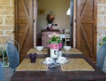 "Casa Ricardo n° 4", 2 -sobni apartman 70 m2. Rustikalno uređen: dnevni boravak/blagovaona s 1 kaučem za 2 osobe, stolom za blagovanje i TV-om sa sat. prijemnikom. Izlaz u vrt. Kuhinjska niša (perilica za suđe, 4 plamena za kuhanje, toster, zamrzivač, el. aparat za kavu). Gornji kat: s kosim stropom galerija s 1 bračnim krevetom. 1 soba s 1 bračnim krevetom. Tuš/WC. Grijanje. Drveni pod. Terasa (natkrita), vrtna terasa, vrt. Garnitura za sjedenje, ležaljke (2). Vrlo lijep, na krajolik. Na raspolaganju: mrežice protiv komaraca, dječji krevetić. Internet (wireless LAN [WLAN], besplatan). Dodatna informacija: kuća za nepušače. 1 mali kućni ljubimac / pas dozvoljen.- postrojenja
