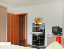 "Appartment OG", 3 -sobni apartman 53 m2 na 1. katu, prema jugozapadu. Prostrano, komforno i udobno uređen: otvorena dnevno-spavaća soba s panoramskim prozorom s 1 kaučem za 1 osobu (120 cm, dužina 190 cm), stolom za blagovanje i TV-om sa sat. prijemnikom (plosnatim TV ekranom). Izlaz na balkon. 1 bračna soba s 1 bračnim krevetom (2 x 90 cm, dužina 200 cm). Izlaz na balkon. 1 soba s 1 bračnim krevetom (2 x 90 cm, dužina 200 cm), umivaonikom. Mala kuhinja (4 staklokeramičke ploče za kuhanje, el. aparat za kavu, Doze za mašinu za kavu(PADS) Senseo) uz doplatu). Kada/WC. El. grijanje. Balkon 9 m2, prema jugu i prema zapadu. Balkonski namještaj. Prekrasan panoramski pogled na jezero, planine i krajolik. Na raspolaganju: glačalo, visoka dječja stolica, dječji krevetić do 2 godine (uz doplatu), sušilo za kosu. Internet (wireless LAN [WLAN], besplatan). Parking (natkrit, 1 automobil). Dodatna informacija: prikladno za obitelji. Apartman za nepušače. 1 kućni ljubimac / pas dozvoljen. Vatrogasni aparat.- postrojenja