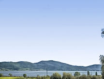 8 -sobna vila 300 m2 na 2 etaže, u prizemlju. Vrlo lijepo i stilski uređena: veliki dnevni boravak s otvorenim kaminom, stolom za blagovanje i TV-om. Izlaz na lođu. 1 soba s 2 kreveta i tušem/bidetom/WC-om. 1 bračna soba s tušem/WC-om. Kuhinjska niša (pećnica, perilica za suđe, 4 Indukcione ploče, zamrzivač). Gornji kat: (vanjske stepenice) veliki dnevni boravak/blagovaona s otvorenim kaminom i TV-om (plosnatim TV ekranom). 1 bračna soba. 1 soba s 1 krevetom. 1 mala soba s 1 krevetom i tušem/bidetom/WC-om. 1 bračna soba s otvorenim kaminom. Kuhinja (5 pećnica, perilica za suđe, mikrovalna pećnica, zamrzivač) s stolom za blagovanje. Kada/bidet/WC, tuš/bidet/WC. Grijanje na plin (uz doplatu). Grijanje na raspolaganju samo od 15.10. do 15.04. Garnitura za sjedenje, mjesto za sjedenje. Prekrasan pogled na jezero. Na raspolaganju: perilica za rublje, glačalo, mrežice protiv komaraca. Internet (wireless LAN [WLAN], besplatan). 2 mala kućna ljubimca / psa dozvoljena. Katovi nisu interno povezani.- Značajke smještaja