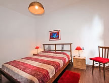 4 -sobna polovica dvojne kuće 90 m2 na 2 etaže. Komforno i rustikalno uređena: dnevni boravak/blagovaona s otvorenim kaminom, TV-om sa sat. prijemnikom, plosnatim TV ekranom, radiom, muzičkom linijom i DVD-om. Izlaz u vrt. Kuhinja (4 ploče za kuhanje, pećnica, mikrovalna pećnica, zamrzivač) s stolom za blagovanje. Donji kat: 2 bračne sobe, svaka soba s 1 bračnim krevetom. 1 soba s 1 x 2 kreveta na kat. Tuš/bidet/WC. Grijanje na drva. Garnitura za sjedenje. 2 kućna ljubimca / psa dozvoljena.- postrojenja