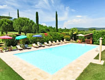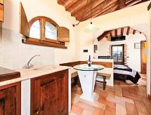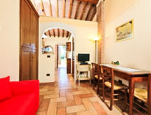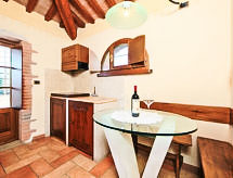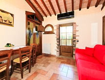 Vrlo stara farma "Casale Ischieto", renovirana, okružena poljima. 800 m od centra mjesta Serre di Rapolano, 28 km od centra mjesta Siena, 30 km od centra mjesta Montalcino, na brežuljku, u zelenom. Za zajedničko korištenje: parcela 50 ha, bazen (16 x 9 m, 80- 165 cm dubok, sezonska dostupnost: 15.May. - 03.Oct.) s unutarnjim stepenicama. Vanjski tuš, vrtna garnitura za sjedenje. Za samostalno korištenje: vrtna garnitura za sjedenje. U kući: restoran, bar, centralno grijanje, grijanje na raspolaganju samo od 01.11. do 15.04., Bicikle na raspolaganju. Prilaz autom do kuće. Parking na parceli. Trgovina 800 m, autobusna postaja 500 m, željeznička postaja "Rapolano Terme" 2 km, termalno kupalište "Rapolano Terme" 2 km. Golf teren (9 rupa) 21 km, tenis 2 km, jahanje konja 6 km. U blizini: Castelnuovo Berardenga 18 km, Montepulciano 31 km, Pienza 37 km, San Quirico D'orcia 44 km. Dodatna informacija: prikladno za obitelji, prikladno za starije osobe. Mogućnost rezerviranja dodatnih smještajnih jedinica.Interior