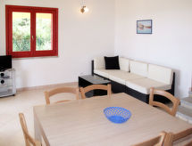 Kuća u nizu "Case Greche Basse". U četvrti Monte Nai 250 m od centra mjesta Costa Rei, 16 km od centra mjesta Villasimius, 60 km od centra mjesta Cagliari, povišeno mjesto, 500 m od mora. Za samostalno korištenje: parcela, mali vrt (nije ograđen). Roštilj. Parking uz kuću. Supermarket, restoran 300 m, trajekt "Cagliari" 65 km, pješčana plaža 500 m.Interior