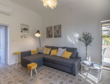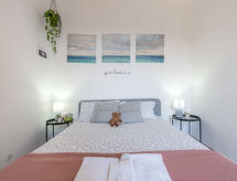 2 -sobni apartman 60 m2, u prizemlju. Ukusno i udobno uređen: dnevni boravak/blagovaona s 1 kaučem za 1 osobu (160 cm, dužina 200 cm). Izlaz u vrt. 1 bračna soba. Izlaz na balkon. Kuhinja/dn. boravak (4 plamena za kuhanje, toster, kuhalo za vodu, mikrovalna pećnica, el. aparat za kavu). Izlaz na balkon. Tuš/bidet/WC. Klima uređaj, grijanje toplim zrakom. Grijanje na raspolaganju samo od 01.11. do 15.04. Veliki balkon 20 m2, vrtna terasa. Garnitura za sjedenje, vrtni roštilj. Vrlo lijep panoramski pogled na more i mjesto. Na raspolaganju: perilica za rublje, visoka dječja stolica, dječji krevetić do 2 godine, sušilo za kosu. Internet (wireless LAN [WLAN], besplatan). 1 kućni ljubimac / pas dozvoljen. CITRA:008055-LT-1129- postrojenja
