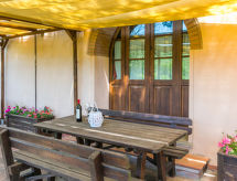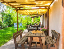 "Casolare Bretulla", 2 -sobni apartman 45 m2, u prizemlju. Renoviran godine 2017, rustikalno i udobno uređen: dnevno-spavaća soba s 1 kaučem za 2 osobe, otvorenim kaminom, stolom za blagovanje i TV-om sa sat. prijemnikom (plosnatim TV ekranom). 1 bračna soba. Otvorena kuhinja (4 ploče za kuhanje, pećnica, perilica za suđe, toster, kuhalo za vodu, zamrzivač, el. aparat za kavu). Tuš/bidet/WC. Grijanje na plin (uz doplatu). Prirodni kameni pod. Vrtna terasa (natkrita). Garnitura za sjedenje, vrtni roštilj, ležaljke. Lijep pogled na krajolik. Na raspolaganju: visoka dječja stolica, dječji krevetić do 2 godine, sušilo za kosu. Internet (wireless LAN [WLAN], besplatan). Parking (natkrit) uz kuću. Dodatna informacija: prikladno za obitelji. Apartman za nepušače. 1 kućni ljubimac / pas dozvoljen. Vlastiti ulaz.- postrojenja