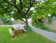 3 -sobni apartman 65 m2 na 2 etaže. Komforno i lijepo uređen: otvoreni dnevni boravak/blagovaona s 1 kaučem za 2 osobe, stolom za blagovanje, kabelskom TV, CD-om, muzičkom linijom, DVD-om i zbirkom DVD-a na raspolaganju. Izlaz u vrt. Kuhinja (4 ploče za kuhanje, pećnica, perilica za suđe, mikrovalna pećnica, zamrzivač, el. aparat za kavu, Doze za mašinu za kavu (Nespresso) uklj). Gornji kat: (kružne stepenice) otvorena prolazna soba s 1 franc. krevetom, radiom, muzičkom linijom i klima uređajem. 1 otvorena mala soba s 2 kreveta. Tuš/bidet/WC. Grijanje na plin (uz doplatu). Vrtna terasa, vrt. Vrtni roštilj (prijenosni). Pogled na dolinu i krajolik. Na raspolaganju: perilica za rublje, glačalo, sušilo za kosu. Internet (wireless LAN [WLAN], besplatan). Na licu mjesta nema naplate dodatnih troškova.- postrojenja