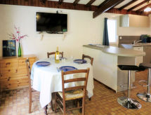 "Catalpas (LIX111)", 2 -sobna kuća 40 m2. Svrsishodno i udobno uređena: dnevno-spavaća soba s 2 kreveta (80 cm, dužina 190 cm), stolom za blagovanje, TV-om sa sat. prijemnikom i međunarodnim TV kanalima (plosnatim TV ekranom). Izlaz u vrt. 1 otvorena soba s 1 franc. krevetom (140 cm, dužina 190 cm). Mala, otvorena kuhinja (4 ploče za kuhanje, perilica za suđe, toster, kuhalo za vodu, mikrovalna pećnica, zamrzivač, el. aparat za kavu). Tuš/WC. El. grijanje. Garnitura za sjedenje, vrtni roštilj (prijenosni), ležaljke (3), ostava. Na raspolaganju: perilica za rublje, visoka dječja stolica, dječji krevetić. Internet (wireless LAN [WLAN], besplatan). Dodatna informacija: kuća za nepušače. Protupožarni alarm.- postrojenja