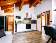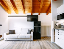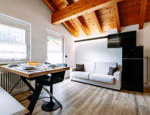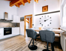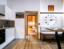 Kuća s više apartmana "Cecilia". 10 apartmana u kući. U četvrti Fontanazzo 1.2 km od centra mjesta Campitello, 4 km od centra mjesta Canazei, 47 km od centra mjesta Bolzano, sunčano mjesto na padini. Za zajedničko korištenje: njegovani terasasti vrt -, livada. Sjenica, terasa, vrtna garnitura za sjedenje, roštilj, dječje igralište (ljuljačka). U kući: spremište za bicikle, spremište za skije, grijač za skijašku obuću. Dostava kruha. Parking na parceli. Trgovina živežnim namirnicama 1.2 km, restoran 1.2 km, autobusna postaja 100 m, željeznička postaja "Bolzano" 45 km, natkriveni bazen 4.7 km. Golf teren (9 rupa) 18 km, skilift 1.7 km, gondola 1.7 km, postaja ski busa 100 m, staza za skijaško trčanje 400 m. Poznata skijališta u blizini: Col Rodella 1.7 km, Belvedere 4.7 km. Poznata jezera u blizini: Lago di Carezza 20 km. Na imanju su životinje. Dodatna informacija: vlasnik živi u istoj kući. Vlasnik ima psa.Interior